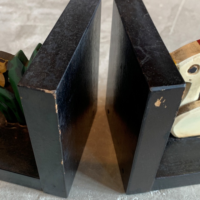 【12.0cm】昭和レトロ TAMAYA 木製 本立て ブックエンド セット■ビンテージ アンティーク インテリア 雑貨 アホル