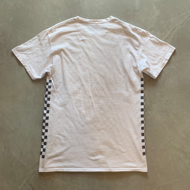 【M】CALL YOUR MOTHER アート プリントTシャツ 白■アメリカ古着 コットン ミケランジェロ ダビデ像 チェッカーフラッグ