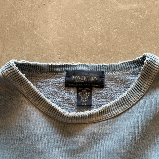 【L/XL】ボロ カナダ製 NON-FICTION ダメージ スウェット ブルー グレー フェード■ビンテージ オールド アメリカ古着 トレーナー