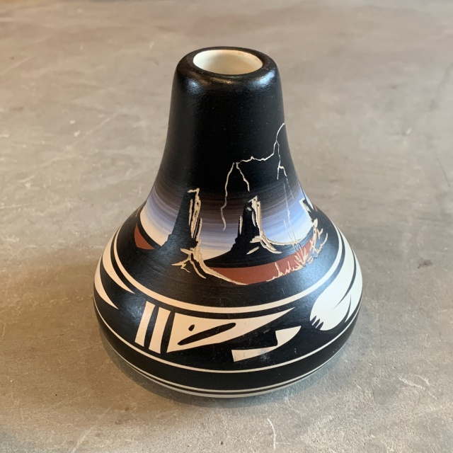 【12.5cm】ナバホ族 ハンドペイント フラワーベース■ビンテージ アンティーク インテリア アメリカ雑貨 陶器 花瓶 ネイティブアメリカン