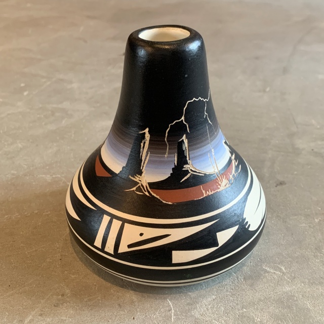 【12.5cm】ナバホ族 ハンドペイント フラワーベース■ビンテージ アンティーク インテリア アメリカ雑貨 陶器 花瓶 ネイティブアメリカン