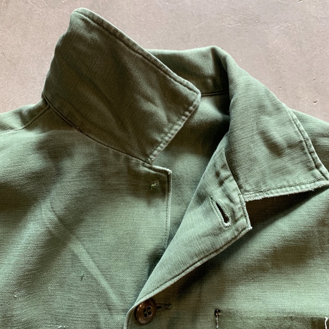 【L】70s 米軍実物 コットンサテン ユーティリティシャツジャケット オリーブ■ビンテージ アメリカ古着 OG-107 ミリタリー No.8