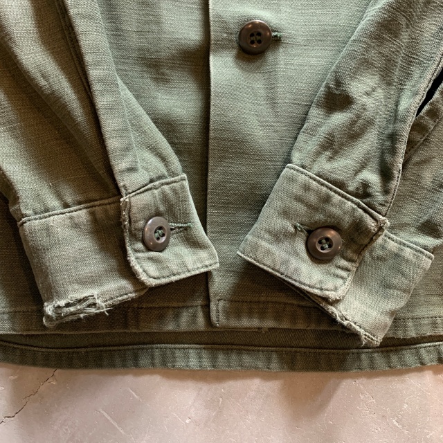【M/L】70s 米軍 ワッペン付き コットンサテン ユーティリティシャツジャケット■ビンテージ アメリカ古着 OG-107 ミリタリー No.9