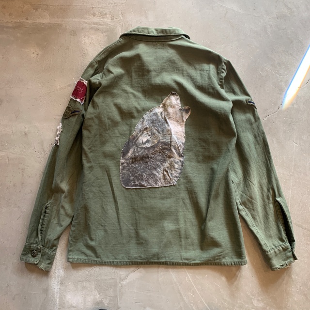 【M/L】70s 米軍 ワッペン付き コットンサテン ユーティリティシャツジャケット■ビンテージ アメリカ古着 OG-107 ミリタリー No.9