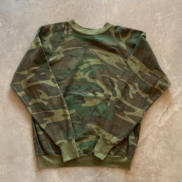 【L】80s USA製 Healthknit ラグランスウェット 迷彩 カモ柄■ビンテージ オールド アメリカ古着 ミリタリー トレーナー ヘルスニット [戻る]