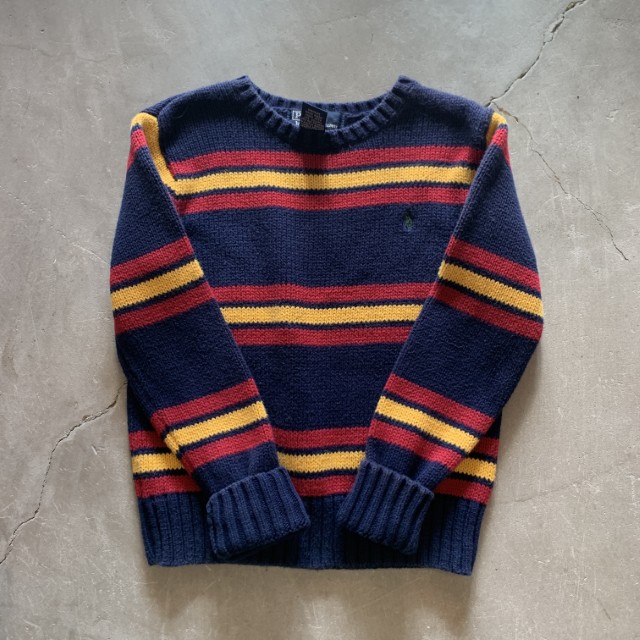 【Kids】Polo Ralph Lauren コットンニット セーター 紺ボーダー■ビンテージ オールド アメリカ古着 キッズ 子供服 ポロラルフローレン