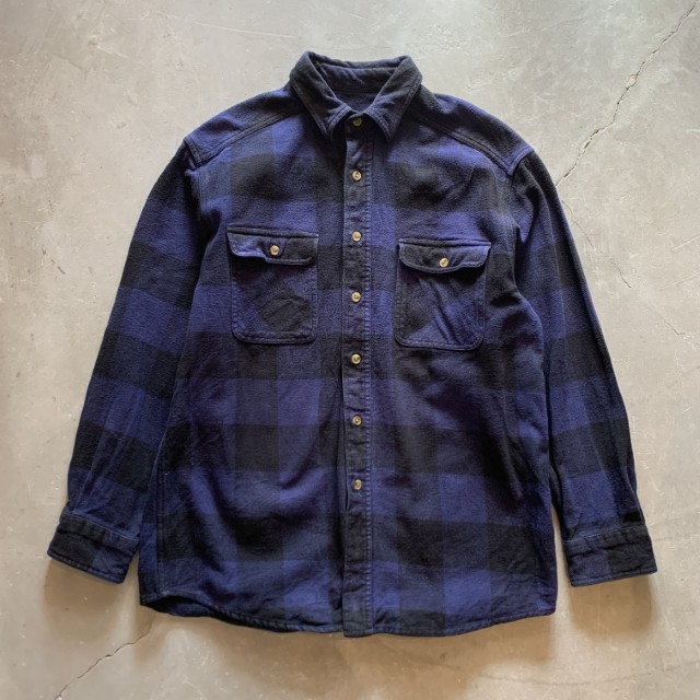 【L/XL】FIELDN' FOREST 長袖ヘビーネルシャツ 紺黒ブロックチェック■ビンテージ オールド レトロ アメリカ古着 90s-2000s