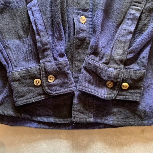 【L/XL】FIELDN' FOREST 長袖ヘビーネルシャツ 紺黒ブロックチェック■ビンテージ オールド レトロ アメリカ古着 90s-2000s