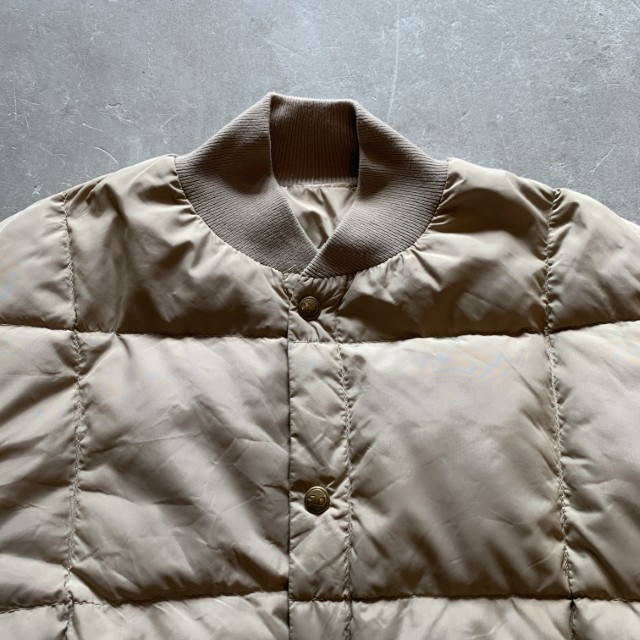 【L】80s-90s WALLS ナイロン キルティング ダウンジャケット ベージュ■ビンテージ オールド アメリカ古着 MA-1タイプ 首リブ