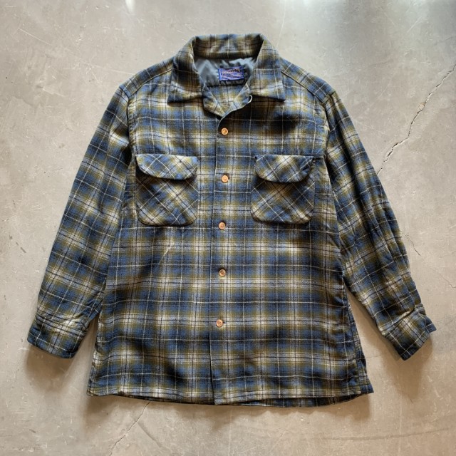 【M】60s USA製 PENDLETON ボックス 長袖ウールシャツ チェック■ビンテージ アメリカ古着 ペンドルトン ボートシャツ オープンカラー