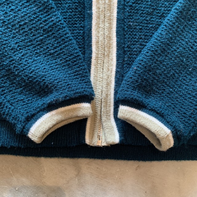 【S or Ladies】60s-70s UNKNOWN アクリルニット ジップカーディガン セーター 深緑■ビンテージ オールド アメリカ古着 レディース