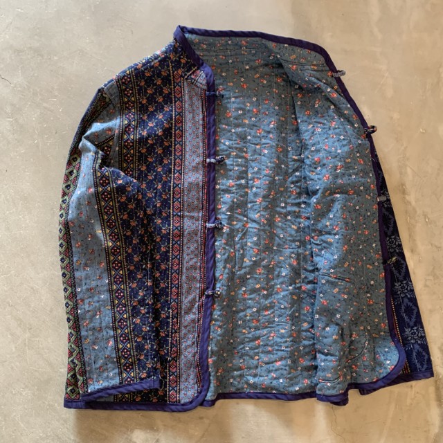 【Ladies】UNKNOWN リバーシブルジャケット 紺 総柄 花柄■ビンテージ レトロ アメリカ古着 レディース キルティング チャイナシャツ [戻る]
