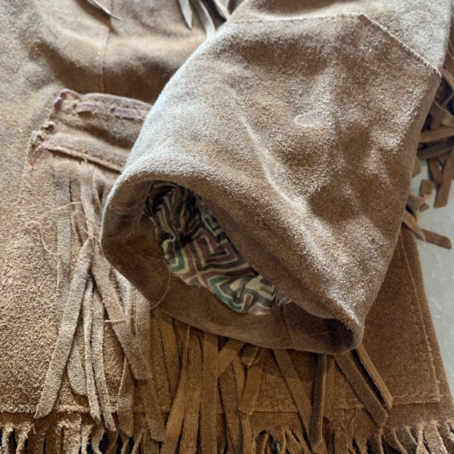 【L】70s USA製 Pioneer Wear フリンジ スエードレザージャケット ブラウン 茶■ビンテージ レトロ アメリカ古着 革ジャン ウエスタン