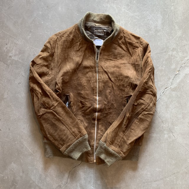 【S】70s HOWARD'S スエードレザージャケット ブラウン 茶■ビンテージ レトロ アメリカ古着 60s ジップアップ 革ジャン MA-1