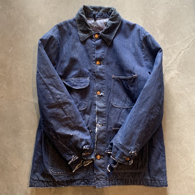 【L/XL】ボロ 70s ブランケットライナー デニムカバーオール ジャケット■ビンテージ オールド アメリカ古着 ブルーベル