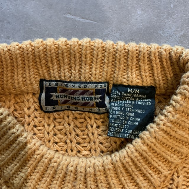 ホームTOPS > KNIT【M/L】90s HUNTING HORN ラミー×コットンニット セーター 黄色■ビンテージ オールド レトロ アメリカ古着 ケーブル編み