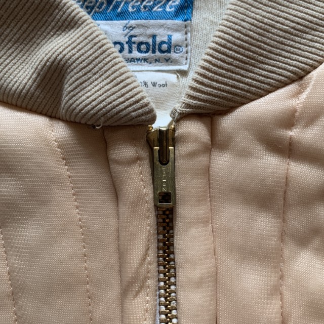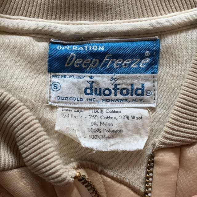 【S】60s duofold キルティングジャケット ベージュ 無地■ビンテージ アメリカ古着 MA-1タイプ ジップアップ ライナー デュオフォールド