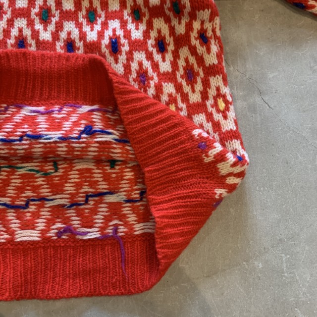 ホームTOPS > KNIT【S/M】MARSH LANDING ウールセーター 赤白 総柄■ビンテージ オールド レトロ アメリカ古着 80s-90s ニット ジオメトリック 幾何学模様