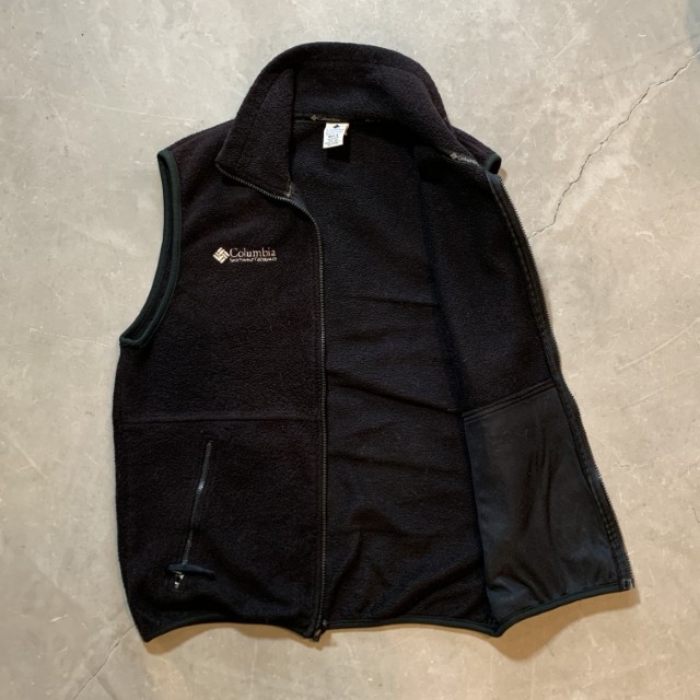 【S/M】USA製 Columbia フルジップ フリースベスト ブラック 黒■ビンテージ オールド レトロ アメリカ古着 90s コロンビア