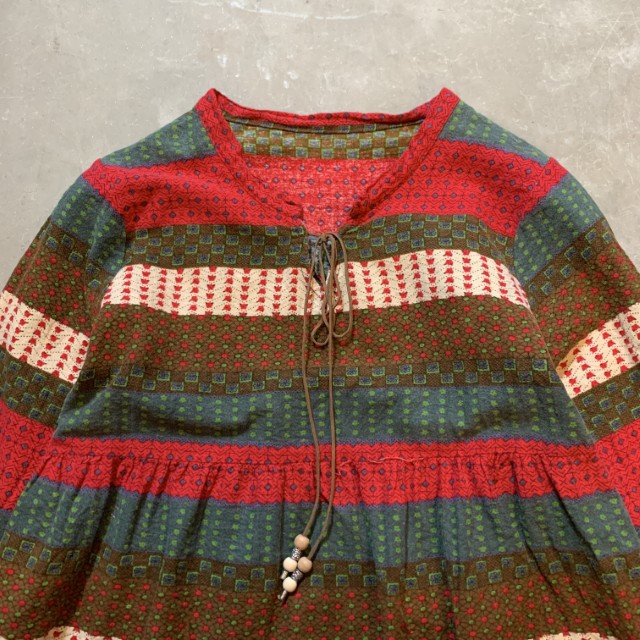 【Ladies】UNKNOWN エスニック コットン ブラウス 総柄■ビンテージ オールド レトロ アメリカ古着 レディース ボヘミアン 民族