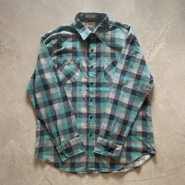 ホームTOPS > NEL&WOOL SHIRTS【XL】RUGGED WEAR 長袖プリントネルシャツ 青緑チェック■ビンテージ オールド レトロ アメリカ古着 90s ライトネル