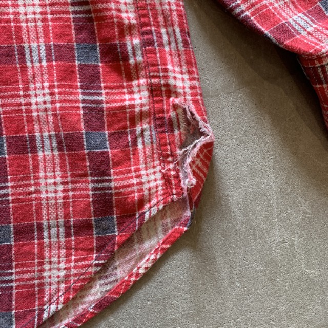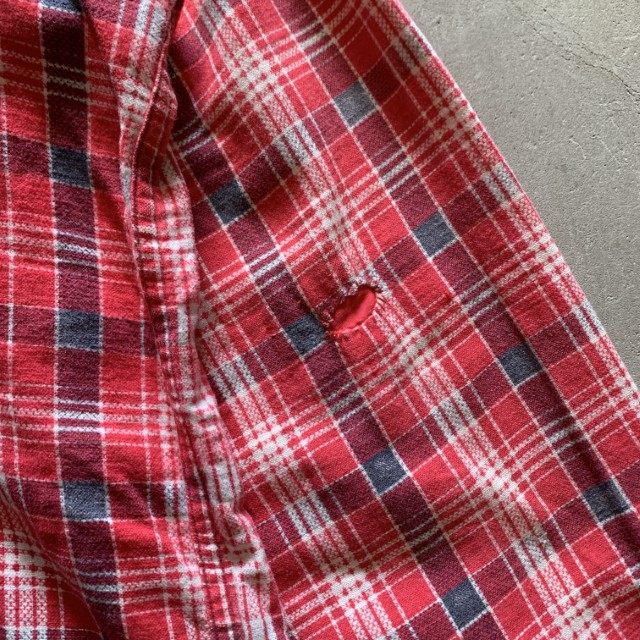 【S】ボロ 50s PENNEY'S 長袖プリントネルシャツ 赤チェック■ビンテージ オールド レトロ アメリカ古着 ぺニーズ プリネル ライトネル