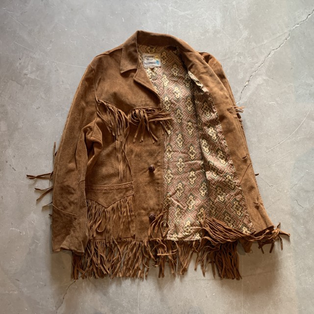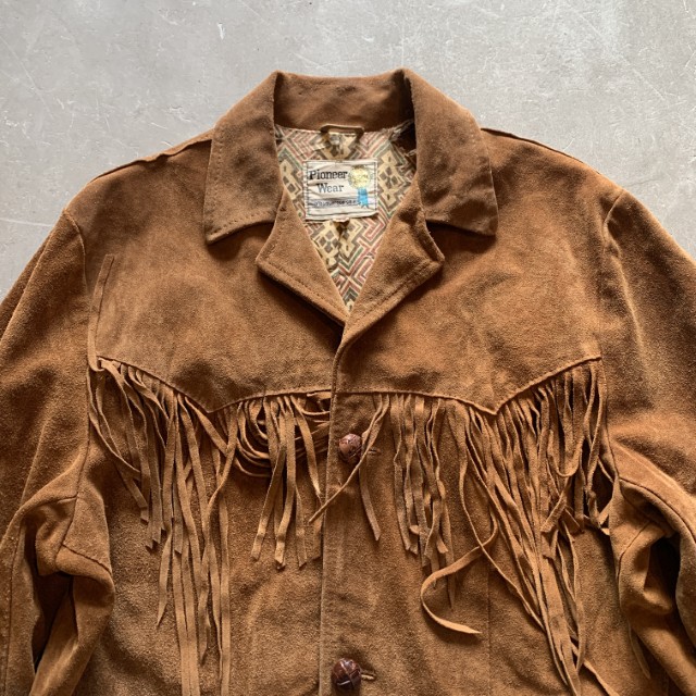 ホームJACKET > LEATHER 【L】70s USA製 Pioneer Wear フリンジ スエードレザージャケット ブラウン 茶■ビンテージ レトロ アメリカ古着 革ジャン ウエスタン