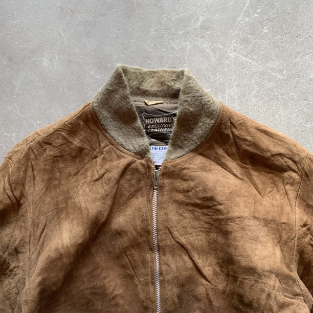 ホームJACKET > LEATHER 【S】70s HOWARD'S スエードレザージャケット ブラウン 茶■ビンテージ レトロ アメリカ古着 60s ジップアップ 革ジャン MA-1
