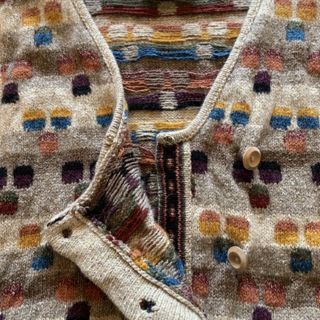 ホームTOPS > VEST【Ladies】イングランド製 Elizabeth Gash ハンドメイド ウール×シルク ニットベスト 総柄■ビンテージ レトロ アメリカ古着 レディース