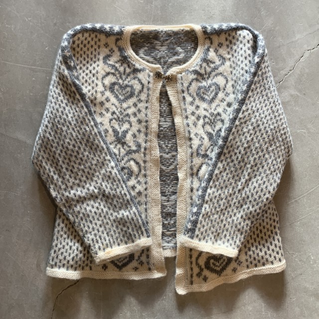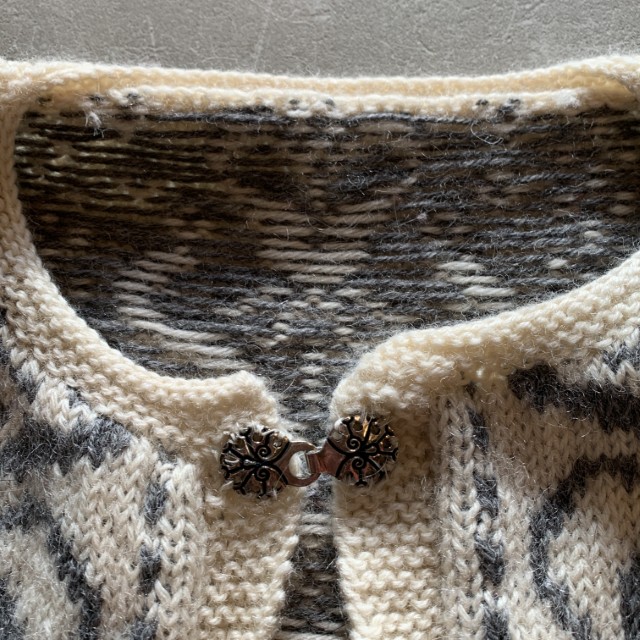 ホームTOPS > CARDIGAN【Ladies】UNKNOWN ノルディックセーター カーディガン ウールニット 白×グレー 総柄■ビンテージ レトロ アメリカ古着 レディース